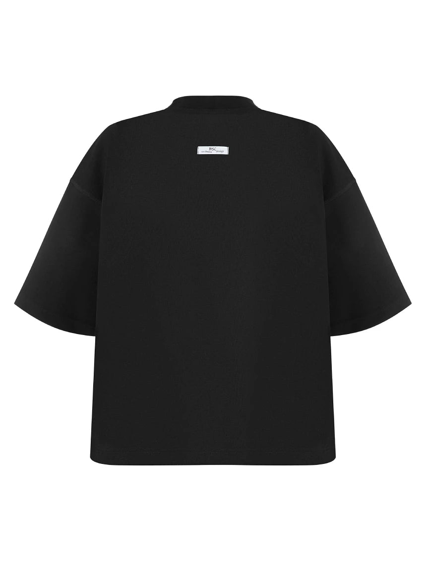 The MSC Tee Black is a T-shirt distinguished by its simplicity and high-quality craftsmanship. Its oversized cut and subtle branding make it the perfect base for everyday styling with a premium streetwear vibe.