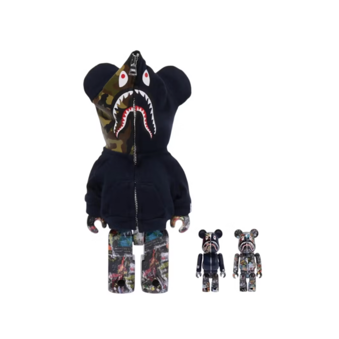 Bearbrick Bape Legacy Camo Shark 100% & 400% Set Navy