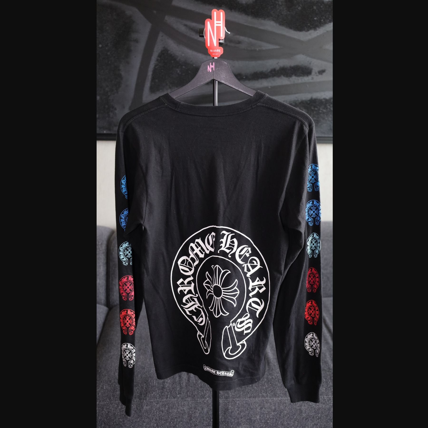 - Design: kultowe krzyże Chrome Hearts, gotycka typografia, branding na plecach i rękawach