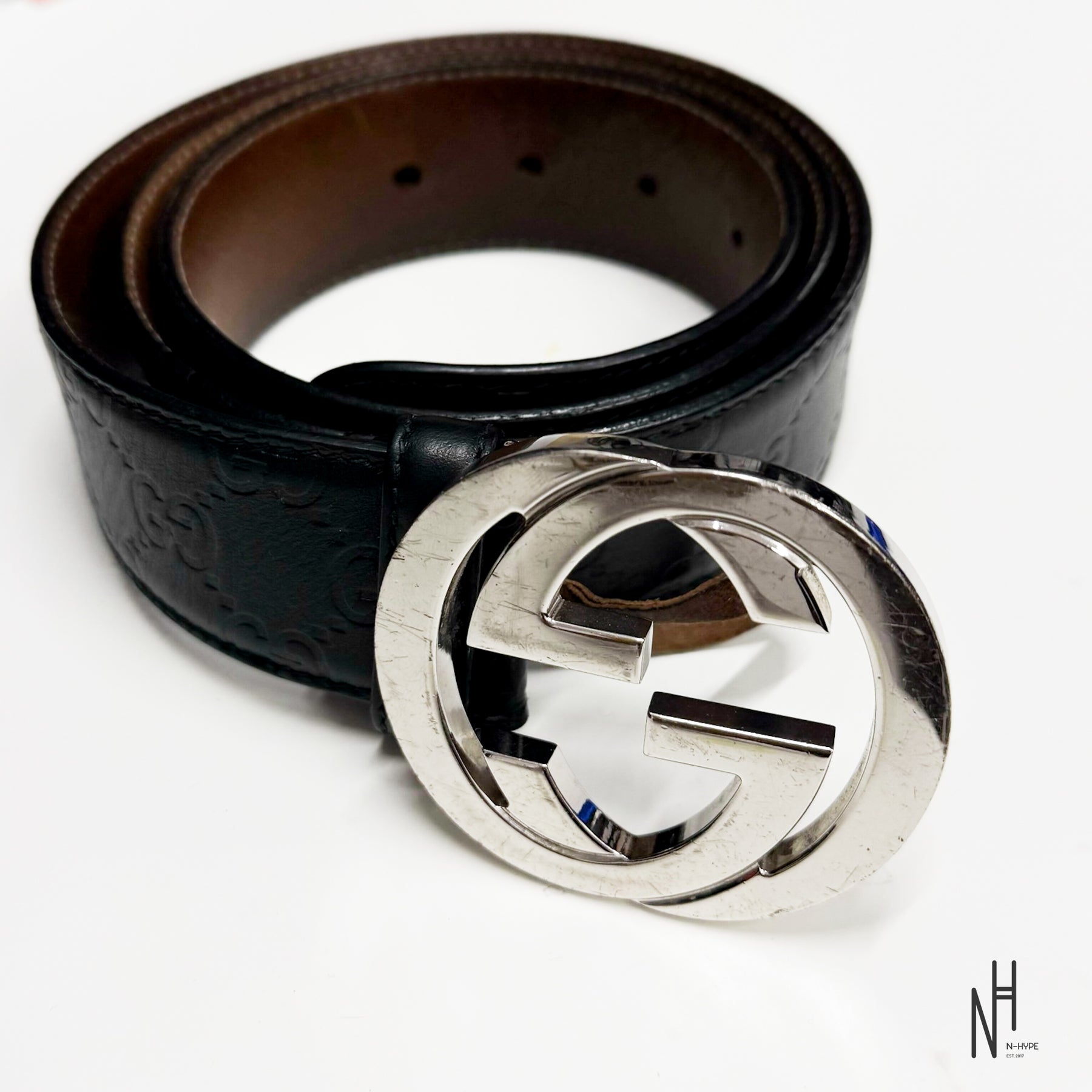 Model: Gucci Monogram leather belt
